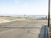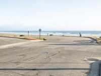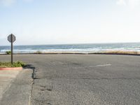 A picturesque road winds along the low coastal shore of California, USA, on a foggy day, with the ocean and sandy beach visible in the background