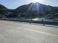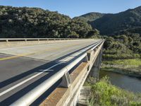 A beautiful coastal road in California, USA, surrounded by lush greenery and overlooking the ocean. The clear blue sky and mountain range in the background make for a stunning landscape.