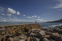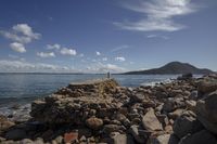 A breathtaking view of a coastal landscape with mountains in the background, showcasing the beauty of nature and the tranquil waters of the ocean.