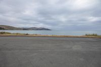 A grey and gloomy day on a coastal road with asphalt surface, surrounded by beautiful landscape and vegetation near the ocean.