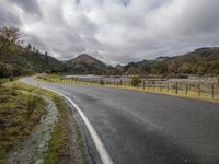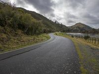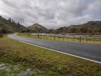 A gloomy day on a coastal road surrounded by lush vegetation and mountains in the highland