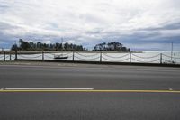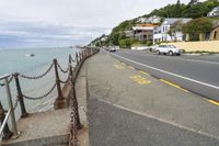 A gloomy day on the coastal road in Nelson, New Zealand, with grey skies and a cloud-covered ocean.