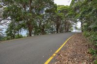 A gloomy day along the coastal road surrounded by lush vegetation and woody plants