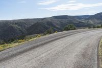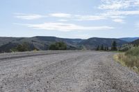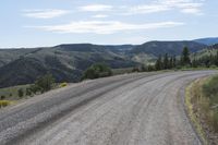 A breathtaking view of the Colorado landscape with majestic mountains, fluffy clouds, and a winding road cutting through the low hills. The dirt road leads to an off-road track, surrounded by nature and gravel surfaces. The grey sky adds a touch of drama to the elevated scenery. This photo was taken in Crested Butte near the Blue Mesa Cutoff on a beautiful day.