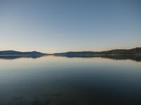 A beautiful sunrise over the coastal landscape, with calm water reflecting the clear sky and the silhouette of a tree in the foreground.