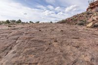 A low road winding through the red rock desert landscape of Utah, USA, with mountains in the background. The clear sky and open space create a serene and rugged natural environment.