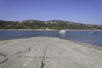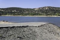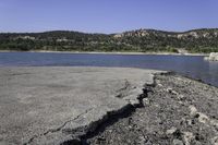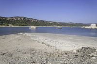 A beautiful scenic drive along the coastal shore with clear skies and rugged landscape.