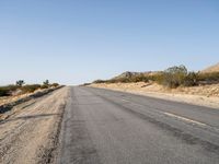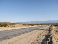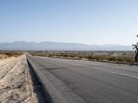In Los Angeles, California, roads stretch into the horizon under a clear sky, offering a striking view of the desert and mountain profiles. The asphalt leads straight down the road, inviting travelers to explore the diverse landscapes of the USA's western coast. As you journey, the juxtaposition of desert and mountainous terrain creates a captivating backdrop, perfect for a day of scenic drives.