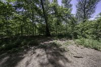 A beautiful view of the lush vegetation and tall trees in the deciduous forest of Ontario, Canada.