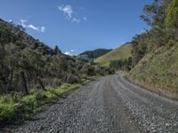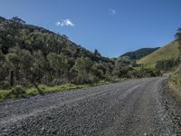 A beautiful landscape featuring an asphalt road winding through lush green vegetation under a clear blue sky.