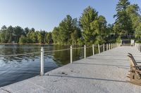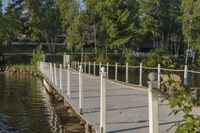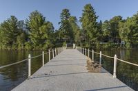 A beautiful day in nature, showcasing the rural landscape of Canada with a guard rail, walkway, and bridge.