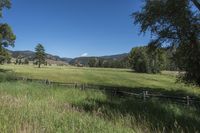 A breathtaking view of the lush green fields and mountains in Taylor Canyon, Colorado. The open space and clear sky make it a perfect day for enjoying the rural beauty of this agricultural area in Summit County.