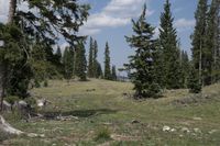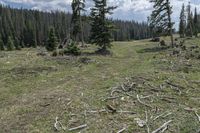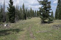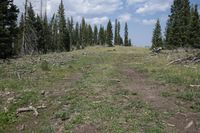 A breathtaking view of the mountainous terrain and lush forests in Colorado, USA. This open space is surrounded by grassy fields and wild vegetation, creating a rugged and natural environment. The dirt road leads straight down the path, perfect for off-road adventures and recreational activities. Explore the wilderness and enjoy the beauty of nature at Antonito, Chama, and La Manga Pass.