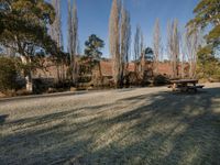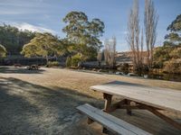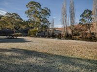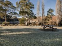 A beautiful landscape with an open space filled with lush green grass and tall trees, providing shade and a peaceful atmosphere for recreation in the park.
