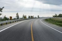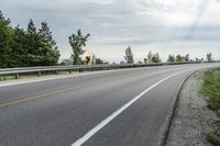 A picturesque view of a high highway surrounded by lush trees and vegetation on a sunny day