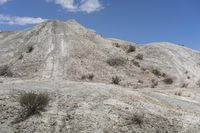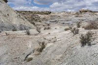 A breathtaking view of the Tabernas desert in Spain, featuring sandy dunes, rocky outcrops, and mountain ranges, under a clear sky.