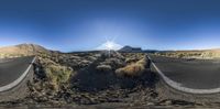 A stunning view of the vegetation and plant community on the slopes of Tenerife, Canary Islands, Spain. The clear sky enhances the beauty of the highland road surface and the lush groundcover. This rural landscape in Europe showcases the serene beauty of the grassy plains and mountain landforms in the national park.
