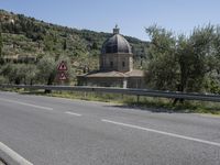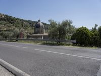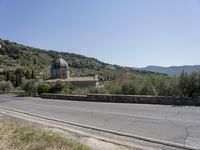 A breathtaking view of the Tuscany countryside with its charming architecture and lush vegetation, under a clear sky.