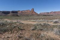 A stunning view of the rugged red rock formations and mountain landforms in Utah's Canyonlands National Park, USA