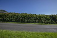 A beautiful landscape with lush vegetation and a well-maintained road surface, under a clear sky.