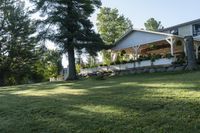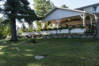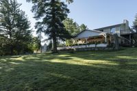 A breathtaking view of a low water landscape in Canada, showcasing the beauty of the residential area surrounded by lush forests, grassy lawns, and open spaces.
