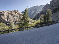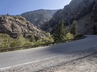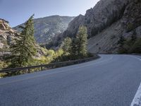 A beautiful scenic road winding through the mountains of Utah, USA, with a clear blue sky and yellow autumn trees lining the highway.
