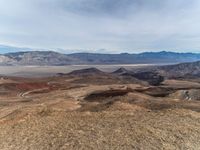 A breathtaking view from a hilltop overlooks a winding dirt road surrounded by open space and nature, with clouds filling the sky on a sunny day. The gravel road leads straight into the distance, providing an expansive view of the surrounding landscape and giving a sense of the vastness and serenity of nature.