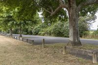 Scenic Park with Lush Green Landscape and Tree-lined Road