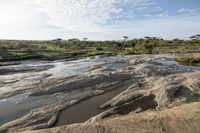 A sunny day on a scenic road surrounded by African savanna, with open spaces, lush grass, and abundant vegetation