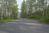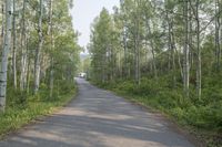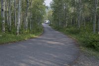 A winding road surrounded by lush forests and beautiful mountains in Colorado, USA.