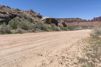 A straight road leading through the stunning red rock landscape of the desert in Utah, USA.
