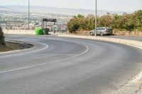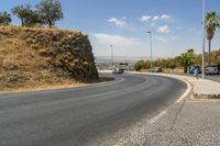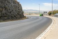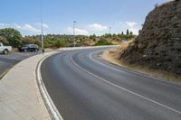 A picturesque road winds through the rural landscape of Granada, Spain, framed by beautiful rock walls and surrounded by stunning nature
