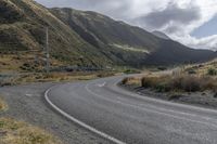 A gloomy day on a scenic road winding through the highland mountains, surrounded by lush vegetation and woody plants