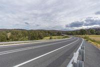 A beautiful asphalt road winding through a rural landscape with lush green fields and trees on a sunny day.