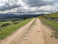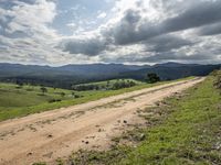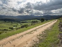 A straight road leading through lush green hills in New South Wales, Australia, with a gloomy grey sky overhead.