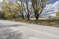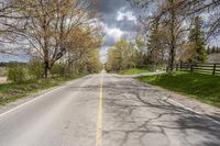 A picturesque road surrounded by lush green grass and trees in Ontario, Canada on a sunny day