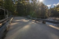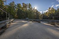 A beautiful day in Ontario, Canada, with sunlight shining on a road surrounded by lush green grass and trees, leading to a serene lake in the background.