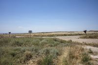 A breathtaking view of the rugged and low landscape in Zaragoza, Spain. The vast expanse of the Monegros Desert with its natural environment, grass surfaces, and prairies. A straight road cutting through the plain, surrounded by sandy dunes, dirt, and asphalt. Enjoy a road trip on this high-infrastructure thoroughfare, with trees lining the way. Take a top-down view of the road surface as you crosswalk through this elevated and picturesque land lot. The journey continues towards the beautiful sea and beach, offering a perfect vacation getaway. Fun-filled adventures await under the charming clouds.