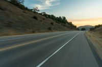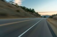 A sunny day on a rural road with asphalt surface winding through the picturesque mountain landscape