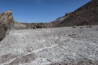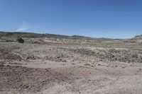 A low road winds through the red rock mountains and open spaces of Utah's desert, showcasing the rugged beauty and unique geology of the region on a clear day.
