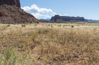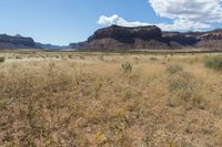 A straight road stretches across the red rock desert landscape of Utah, surrounded by sand, dirt, and gravel, with clear blue skies and majestic mountains in the distance.