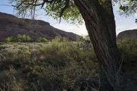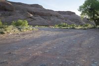 A low road winds through the stunning red rock landscape of Utah's desert, surrounded by mountains and wild nature.