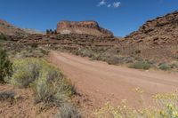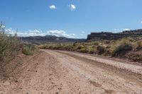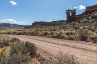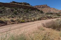 A breathtaking view of the Utah desert landscape on Blue Notch Road, with red rock formations, sandy dunes, and a clear sky.