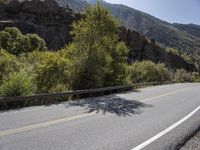 A stunning view of the Utah highlands with mountains, trees, and a winding road on a clear day