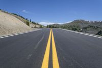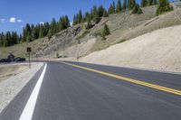 A breathtaking landscape of Cottonwood Pass in Colorado, USA with clear skies, lush vegetation, and a curving road surface.