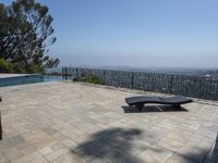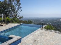 A stunning aerial view of the Los Angeles skyline at sunset, showcasing the iconic skyscrapers and residential properties against a backdrop of mountains and a clear sky.
