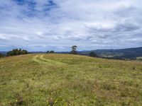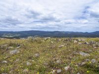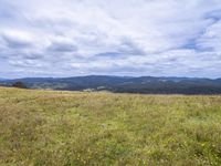 A breathtaking view of the New South Wales landscape, with open grassy plains, bald hills and a mountain range in the distance. The gloomy grey sky adds a touch of drama to the scene. This overlook captures the beauty of the Sapphire Coast Hinterland in Australia.