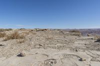 A breathtaking view of the rugged and beautiful San Rafael Swell in Utah, USA. The desert landscape with red rocks, cliffs, and mountains creates a stunning panorama. The clear sky provides a perfect backdrop for this picturesque scene at the moonscape overlook.