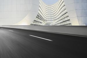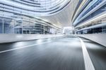 The modern architecture of Shanghai cityscape is illuminated by the artificial light at dawn.