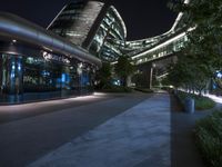 A view of Shanghai's skyline, illuminated by artificial light and featuring a mix of skyscrapers, corporate headquarters, shopping centers, and public transportation, all against a backdrop of distant mountains and clear night sky.